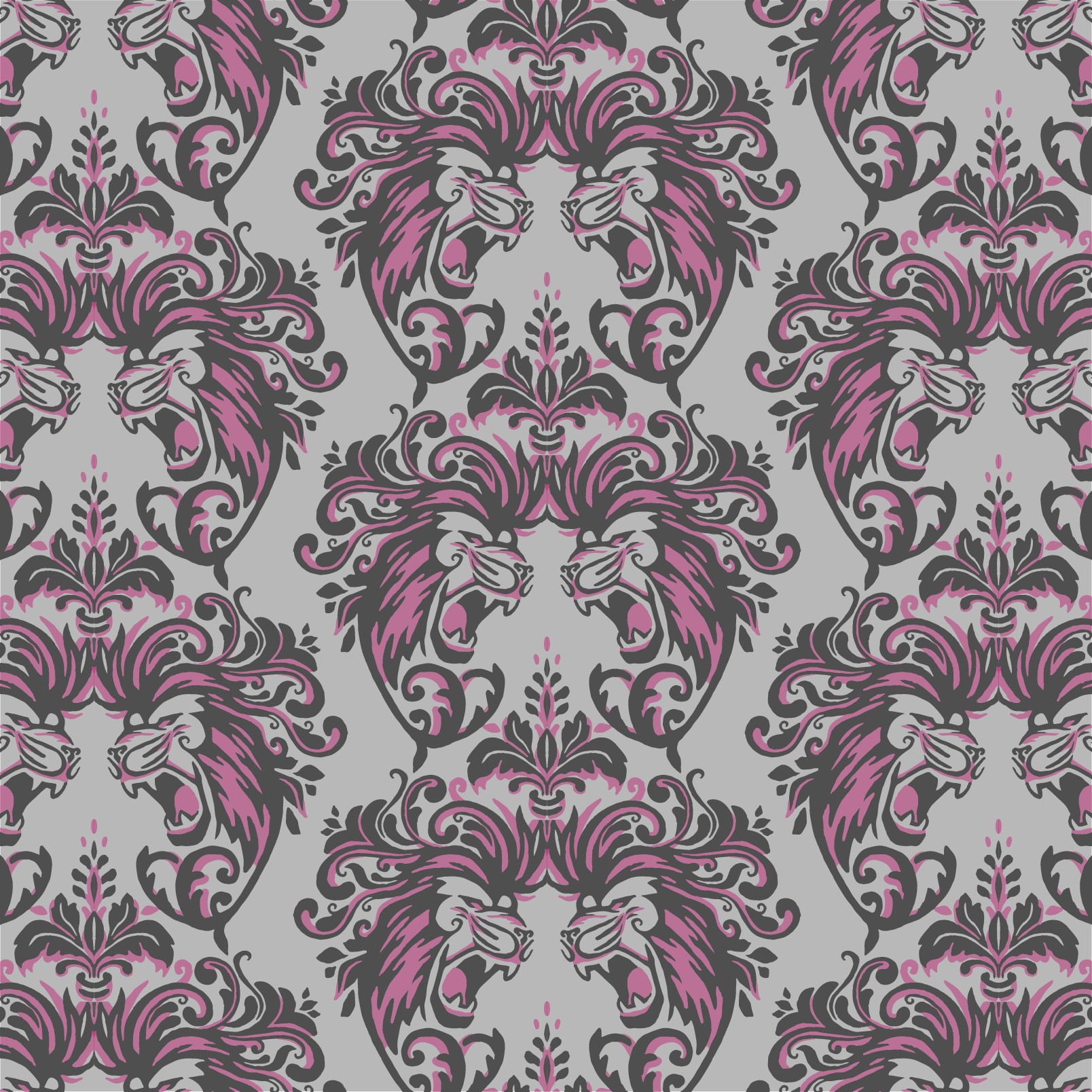 Roaring Lions Damask pattern design